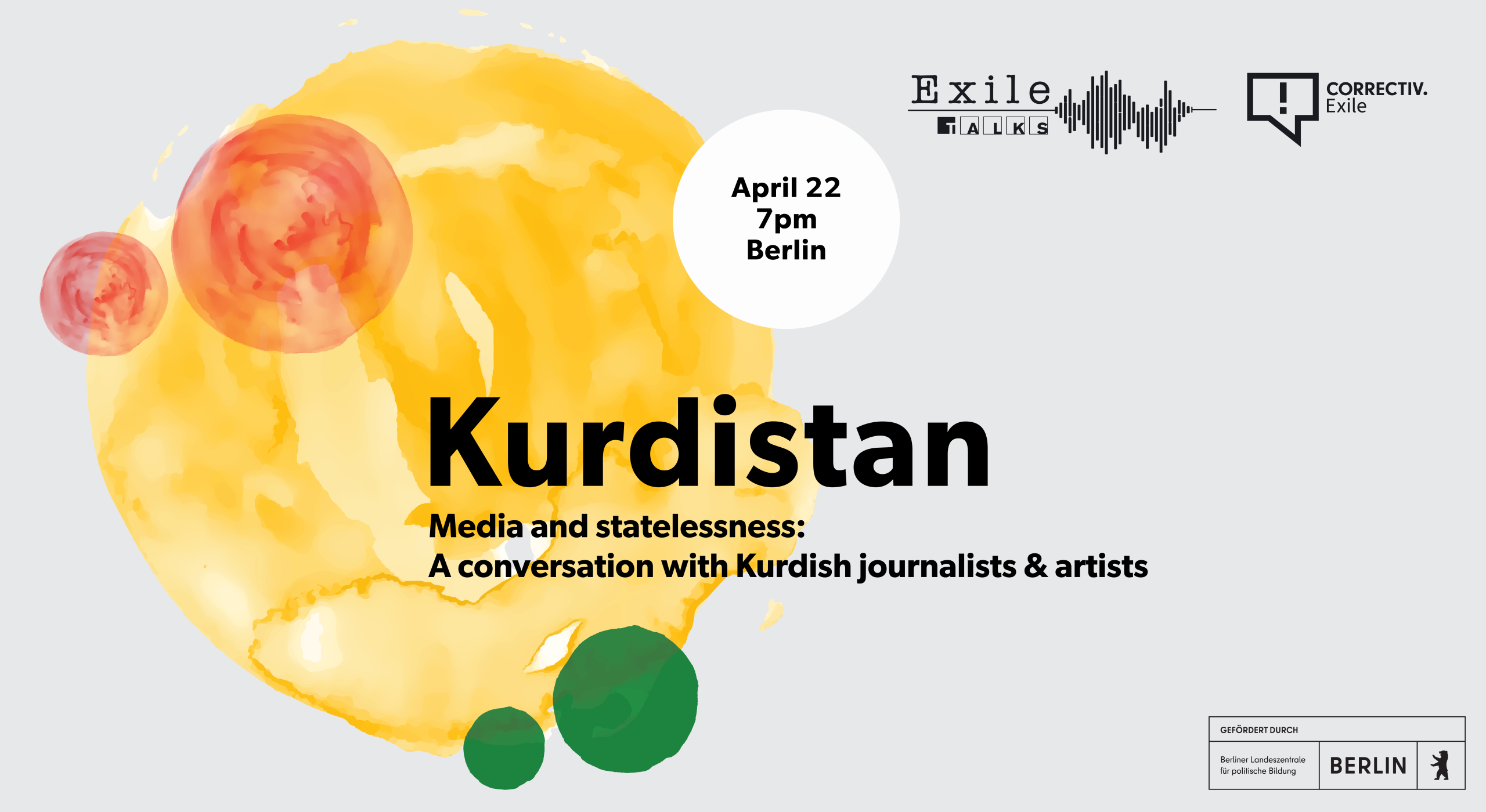 How does journalism function when there is no state to protect it—and several states actively working to suppress it? On the Day of Kurdish Journalism, April 22, CORRECTIV.Exile invites you to listen, ask, learn and talk to and with Kurdish journalists and artists.